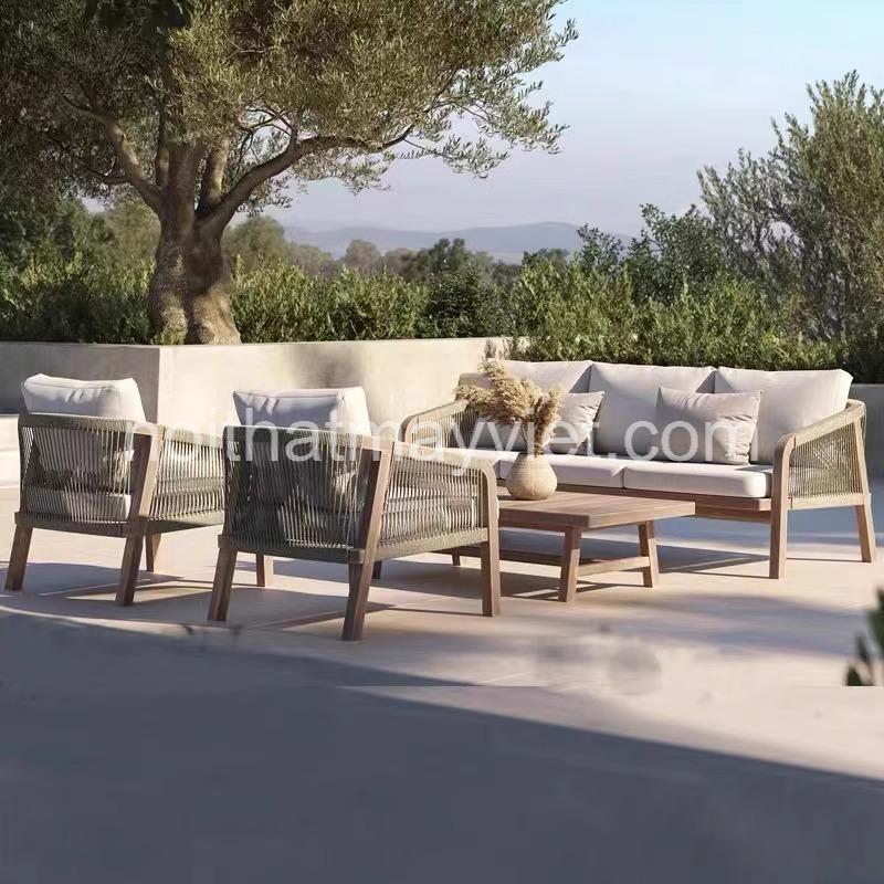 Bàn Ghế Khung Gỗ Sồi Đan Dây Dù – Sự Kết Hợp Giữa Tự Nhiên Và Hiện Đại
