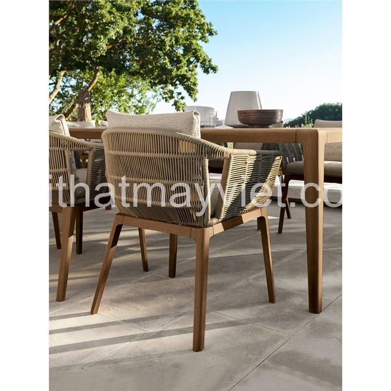 Bàn Ghế Ngoài Trời Khung Gỗ Kết Hợp Dây Đan – Sang Trọng và Đẳng Cấp Cho Không Gian Mở