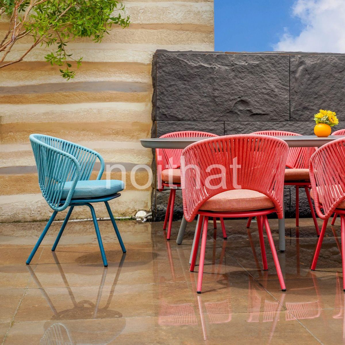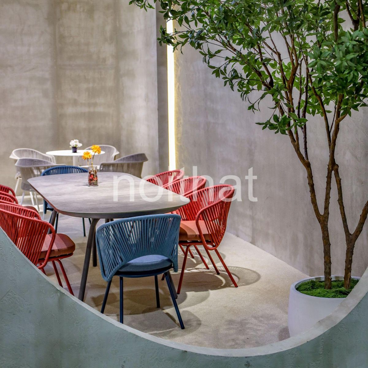 Bộ bàn ghế gây ấn tượng bởi sự phối màu độc đáo giữa hai gam đỏ – xanh hiện đại, tạo nên điểm nhấn sinh động và thu hút. Từng chiếc ghế được thiết kế theo form ôm lưng, mang lại cảm giác thoải mái khi ngồi, đồng thời góp phần tạo sự hài hòa cho tổng thể. Mặt bàn dáng oval sang trọng, kích thước rộng rãi, thích hợp cho các buổi họp mặt, thư giãn hoặc phục vụ khách tại không gian
