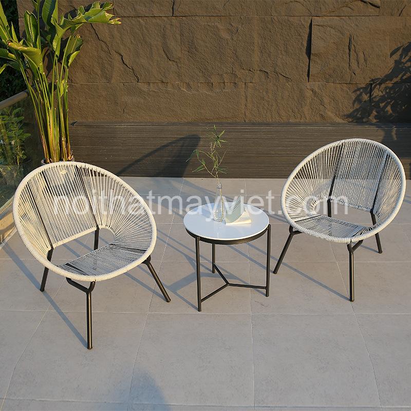 Trong không gian sân vườn, ban công hay quán cà phê ngoài trời, bộ bàn ghế không chỉ là nơi thư giãn mà còn là điểm nhấn tạo nên phong cách cho tổng thể. Hiểu được điều đó, Nhà Mây Việt mang đến sản phẩm bàn ghế ngoài trời với chất liệu khung sắt sơn tĩnh điện, đan nhựa giả mây – lựa chọn hoàn hảo cho những ai yêu thích sự tinh tế, bền bỉ và tiện dụng.